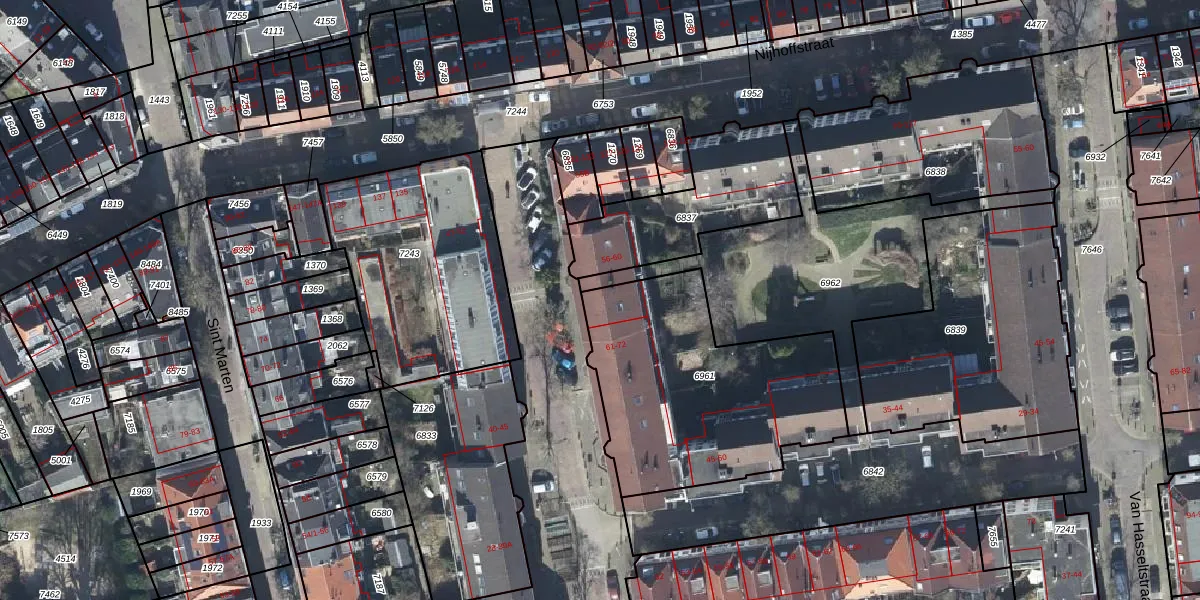 Het adres is gelegen op perceel 6961 in de sectie N en de kadastrale gemeente Arnhem. De kadastrale aanduiding is aldus AHM01-N-6961. Het perceel is kleiner dan gemiddeld in Arnhem. Het perceel is 1065 m² groot, terwijl het gemiddelde ligt op 2526,79 m². Het grootste perceel in de kadastrale gemeente is 1,57 km². Het kleinste perceel heeft een oppervlakte van 0 m². Op het perceel zijn 25 adressen aanwezig. De huidige grenzen van het perceel zijn digitaal in de Basisregistratie Kadaster (BRK) geregistreerd op 16-04-2003.