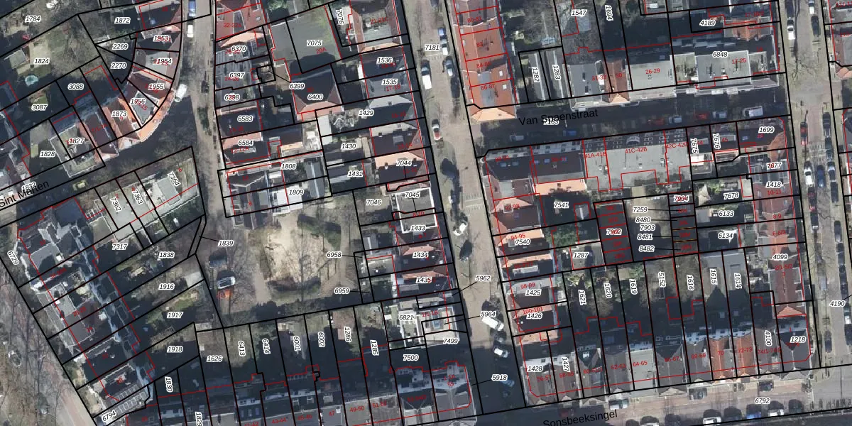 Gebruik de zoekbalk of klik op een perceel voor informatie over de adressen binnen dit perceel.
