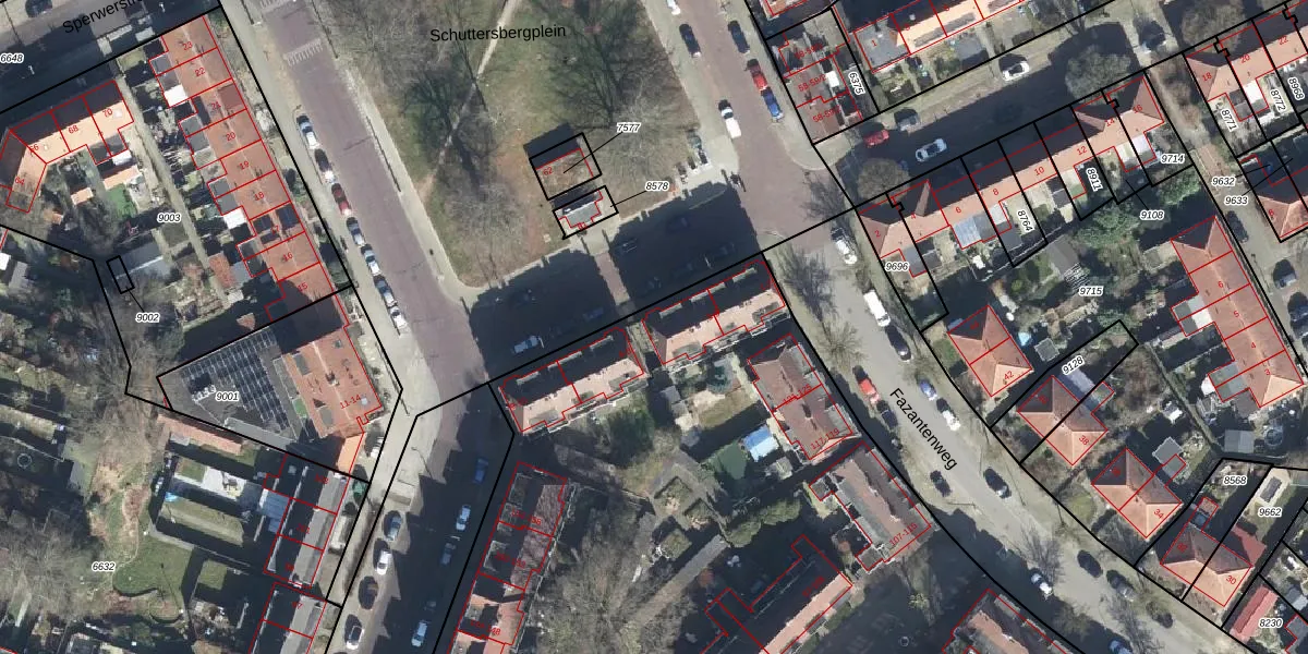 Het perceel waarop Schuttersbergplein 5 staat heeft een oppervlakte van 2,1 ha. Dit is een zeer groot perceel. De perceeloppervlakte wordt geregistreerd door het Kadaster. Gedetailleerde informatie over de maten van dit perceel kunt u vinden in het rapport Kadastrale kaart met maatvoering van Schuttersbergplein 5.
