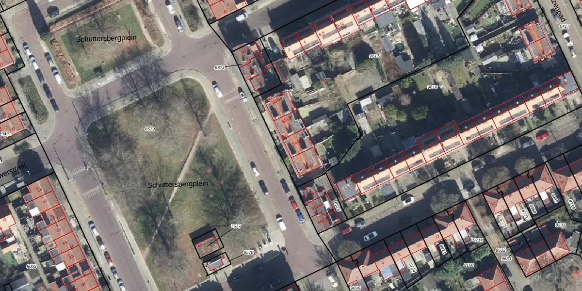 Schuttersbergplein 54 is gelegen op kadastraal perceel AHM01C9617. Deze kadastrale aanduiding is uniek en wordt gebruikt door het Kadaster om eigendomsrechten en andere zakelijke rechten vast te leggen. Het perceel maakt onderdeel uit van de kadastrale gemeente Arnhem.