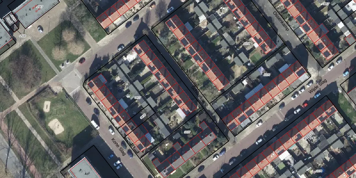 Het perceel waarop Schuurkamp 12 staat heeft een oppervlakte van 2291 m². Dit is een zeer groot perceel. De perceeloppervlakte wordt geregistreerd door het Kadaster. Gedetailleerde informatie over de maten van dit perceel kunt u vinden in het rapport Kadastrale kaart met maatvoering van Schuurkamp 12.