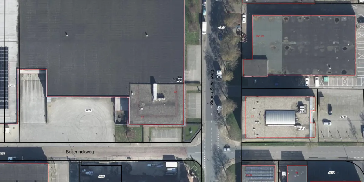 Het perceel waarop Simon Stevinweg 32 staat heeft een oppervlakte van 1,1 ha. Dit is een zeer groot perceel. De perceeloppervlakte wordt geregistreerd door het Kadaster. Gedetailleerde informatie over de maten van dit perceel kunt u vinden in het rapport Kadastrale kaart met maatvoering van Simon Stevinweg 32.