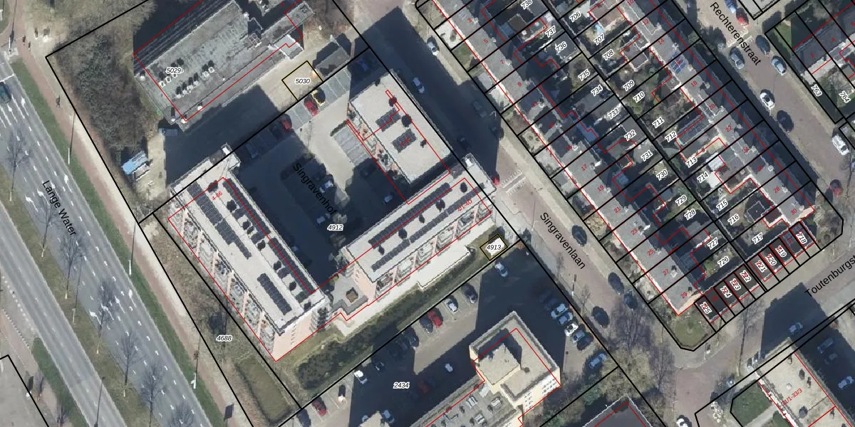 Het perceel waarop Singravenlaan 4-23 staat heeft een oppervlakte van 3635 m². Dit is een zeer groot perceel. De perceeloppervlakte wordt geregistreerd door het Kadaster. Gedetailleerde informatie over de maten van dit perceel kunt u vinden in het rapport Kadastrale kaart met maatvoering van Singravenlaan 4-23.