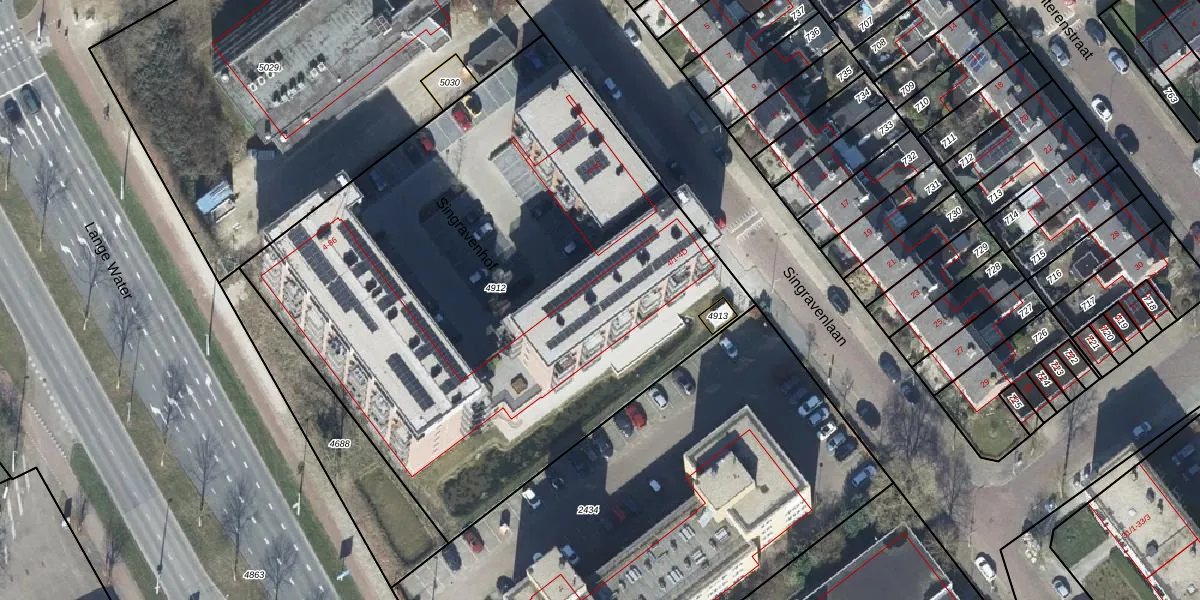 Het perceel waarop Singravenlaan 4-31 staat heeft een oppervlakte van 3635 m². Dit is een zeer groot perceel. De perceeloppervlakte wordt geregistreerd door het Kadaster. Gedetailleerde informatie over de maten van dit perceel kunt u vinden in het rapport Kadastrale kaart met maatvoering van Singravenlaan 4-31.