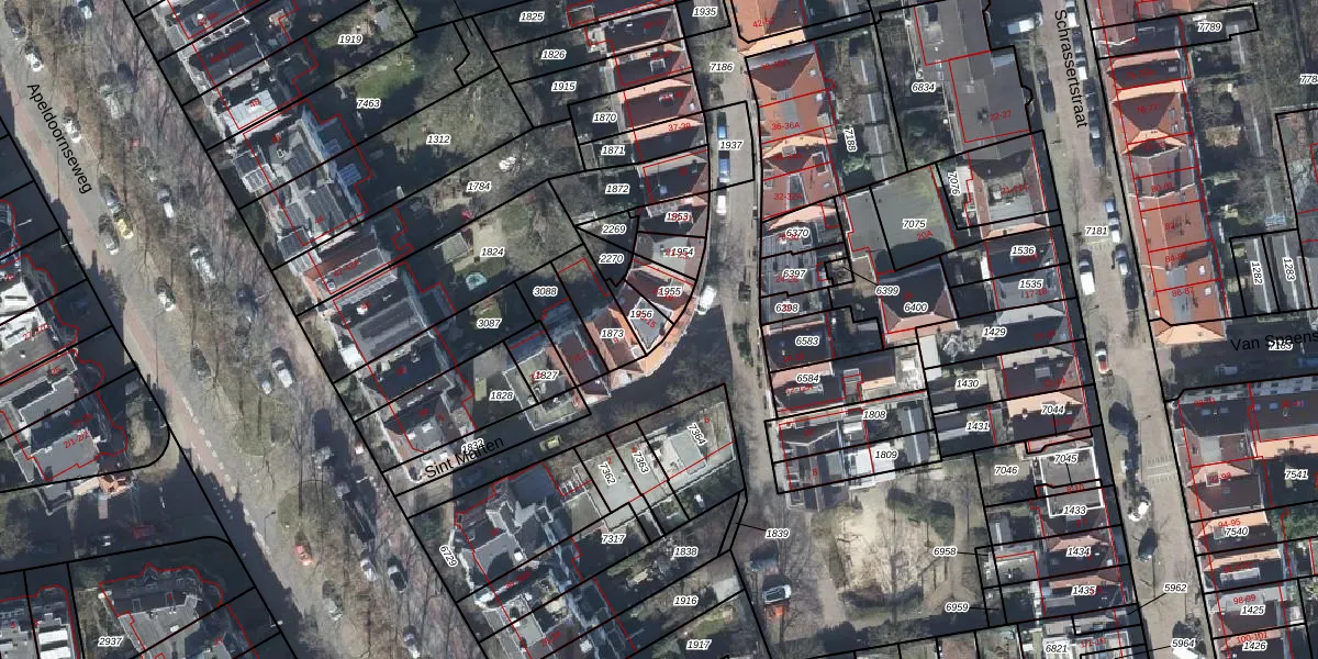 Het perceel waarop Sint Marten 13 staat heeft een oppervlakte van 56 m². Dit is een klein perceel. De perceeloppervlakte wordt geregistreerd door het Kadaster. Gedetailleerde informatie over de maten van dit perceel kunt u vinden in het rapport Kadastrale kaart met maatvoering van Sint Marten 13.