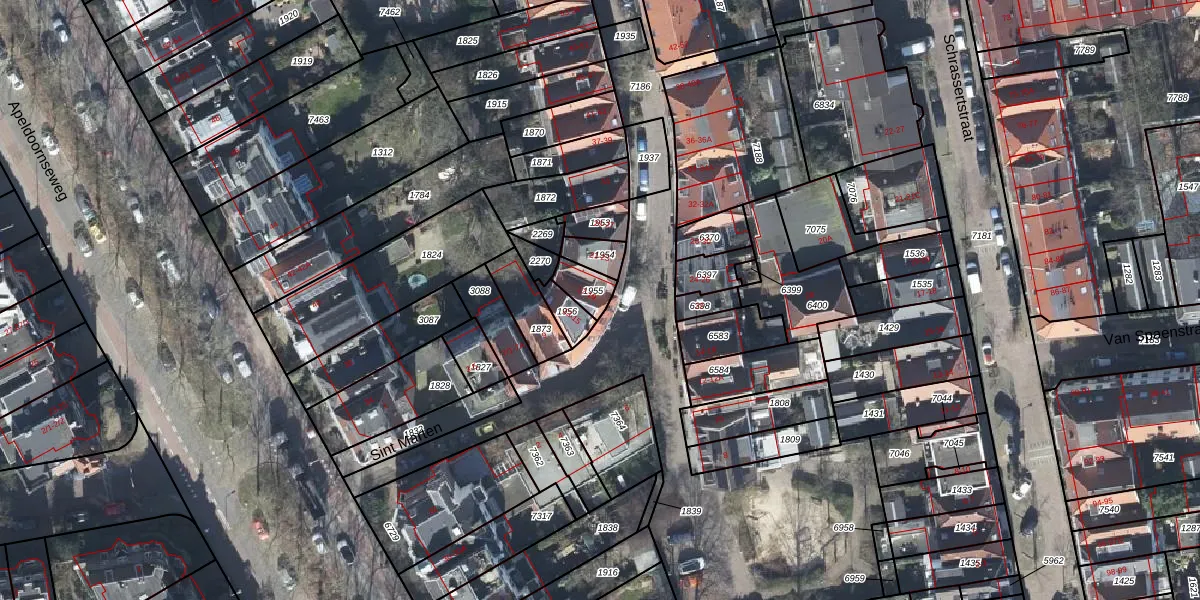 Het perceel waarop Sint Marten 17 staat heeft een oppervlakte van 56 m². Dit is een klein perceel. De perceeloppervlakte wordt geregistreerd door het Kadaster. Gedetailleerde informatie over de maten van dit perceel kunt u vinden in het rapport Kadastrale kaart met maatvoering van Sint Marten 17.