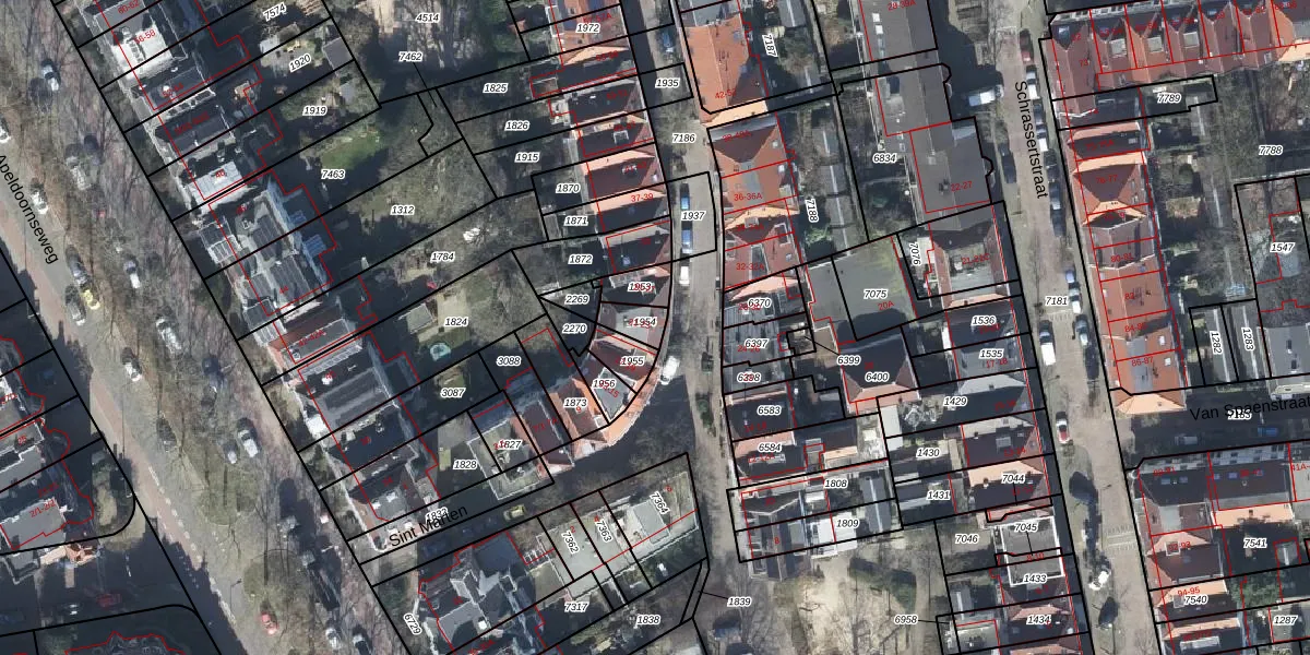Het perceel waarop Sint Marten 21 staat heeft een oppervlakte van 56 m². Dit is een klein perceel. De perceeloppervlakte wordt geregistreerd door het Kadaster. Gedetailleerde informatie over de maten van dit perceel kunt u vinden in het rapport Kadastrale kaart met maatvoering van Sint Marten 21.