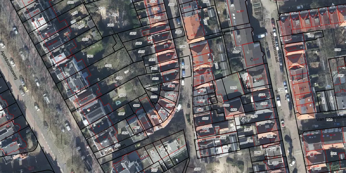 Het perceel waarop Sint Marten 27 staat heeft een oppervlakte van 56 m². Dit is een klein perceel. De perceeloppervlakte wordt geregistreerd door het Kadaster. Gedetailleerde informatie over de maten van dit perceel kunt u vinden in het rapport Kadastrale kaart met maatvoering van Sint Marten 27.