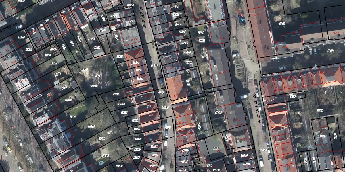 Het perceel waarop Sint Marten 48 staat heeft een oppervlakte van 320 m². Dit is een groot perceel. De perceeloppervlakte wordt geregistreerd door het Kadaster. Gedetailleerde informatie over de maten van dit perceel kunt u vinden in het rapport Kadastrale kaart met maatvoering van Sint Marten 48.