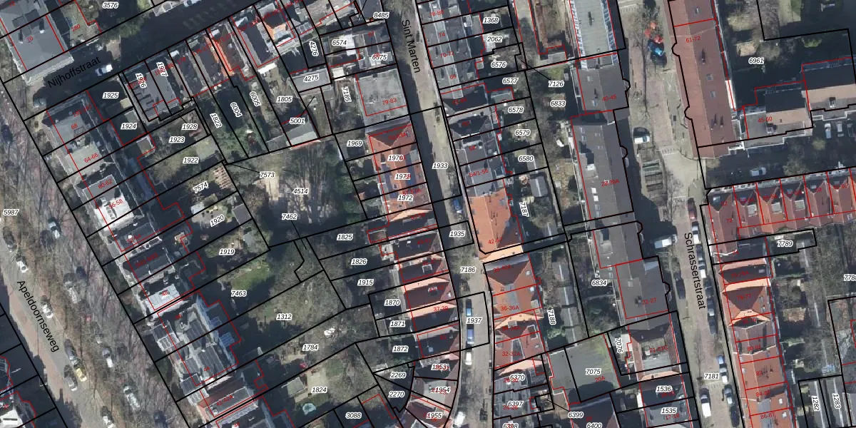 Het perceel waarop Sint Marten 53 staat heeft een oppervlakte van 181 m². Dit is een middelgroot perceel. De perceeloppervlakte wordt geregistreerd door het Kadaster. Gedetailleerde informatie over de maten van dit perceel kunt u vinden in het rapport Kadastrale kaart met maatvoering van Sint Marten 53.