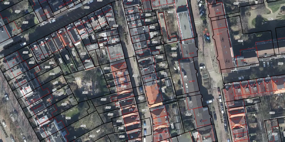 Het perceel waarop Sint Marten 58 staat heeft een oppervlakte van 110 m². Dit is een middelgroot perceel. De perceeloppervlakte wordt geregistreerd door het Kadaster. Gedetailleerde informatie over de maten van dit perceel kunt u vinden in het rapport Kadastrale kaart met maatvoering van Sint Marten 58.
