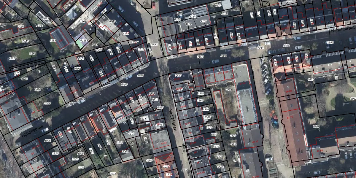 Het perceel waarop Sint Marten 88 staat heeft een oppervlakte van 63 m². Dit is een klein perceel. De perceeloppervlakte wordt geregistreerd door het Kadaster. Gedetailleerde informatie over de maten van dit perceel kunt u vinden in het rapport Kadastrale kaart met maatvoering van Sint Marten 88.