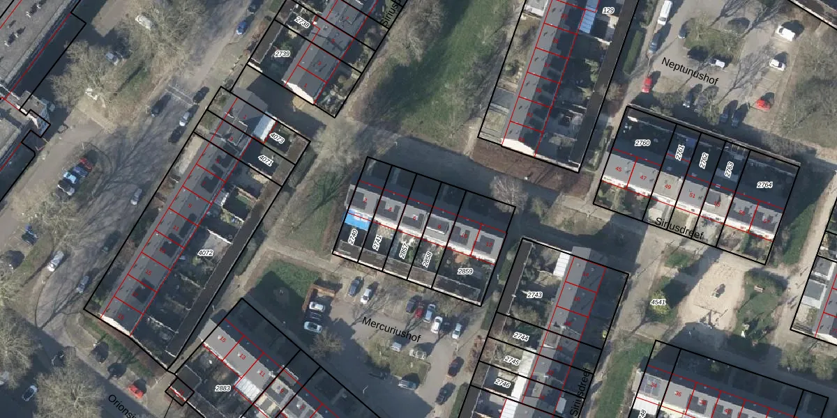 Gebruik de zoekbalk of klik op een perceel voor informatie over de adressen binnen dit perceel.