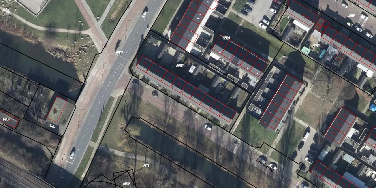 Het perceel waarop Slaakweg 223 staat heeft een oppervlakte van 1545 m². Dit is een zeer groot perceel. De perceeloppervlakte wordt geregistreerd door het Kadaster. Gedetailleerde informatie over de maten van dit perceel kunt u vinden in het rapport Kadastrale kaart met maatvoering van Slaakweg 223.