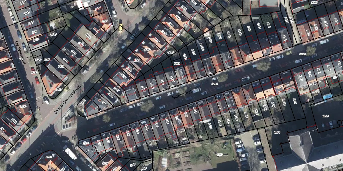Het perceel waarop Sloetstraat 118 staat heeft een oppervlakte van 95 m². Dit is een klein perceel. De perceeloppervlakte wordt geregistreerd door het Kadaster. Gedetailleerde informatie over de maten van dit perceel kunt u vinden in het rapport Kadastrale kaart met maatvoering van Sloetstraat 118.