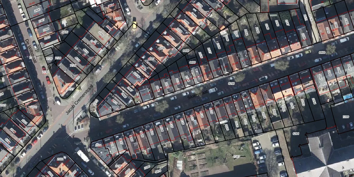 Het perceel waarop Sloetstraat 122 staat heeft een oppervlakte van 85 m². Dit is een klein perceel. De perceeloppervlakte wordt geregistreerd door het Kadaster. Gedetailleerde informatie over de maten van dit perceel kunt u vinden in het rapport Kadastrale kaart met maatvoering van Sloetstraat 122.