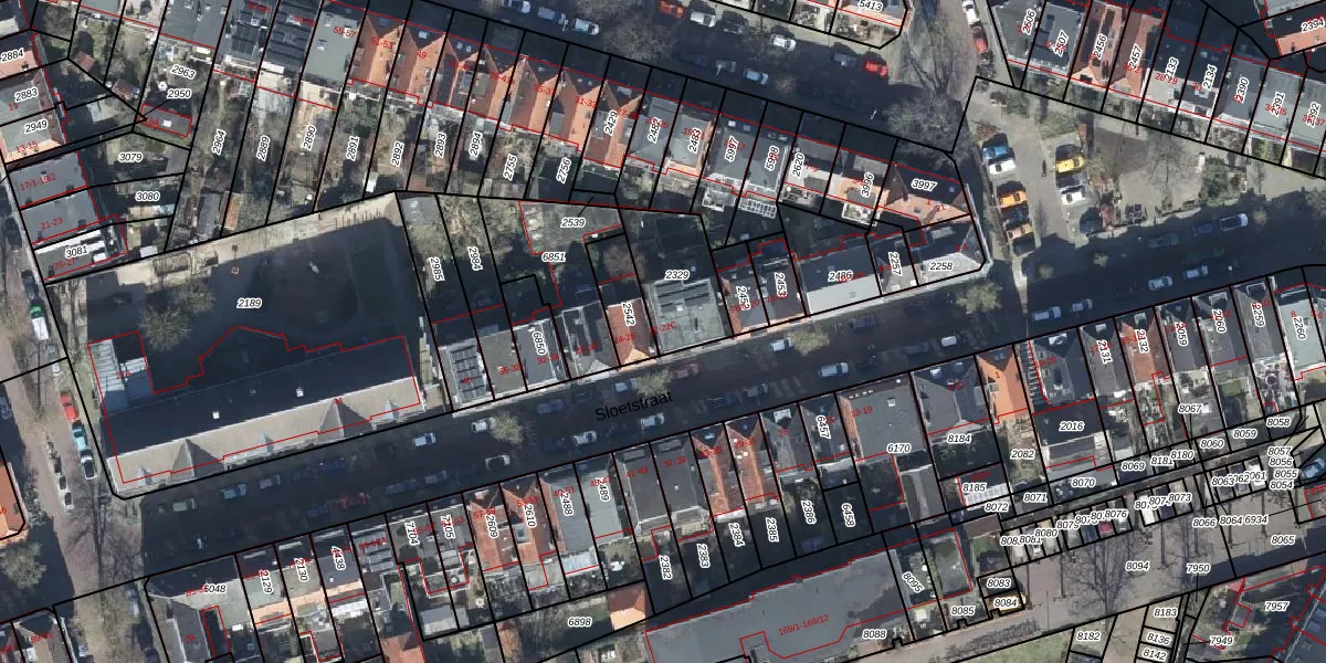 Het perceel waarop Sloetstraat 22-C staat heeft een oppervlakte van 255 m². Dit is een middelgroot perceel. De perceeloppervlakte wordt geregistreerd door het Kadaster. Gedetailleerde informatie over de maten van dit perceel kunt u vinden in het rapport Kadastrale kaart met maatvoering van Sloetstraat 22-C.