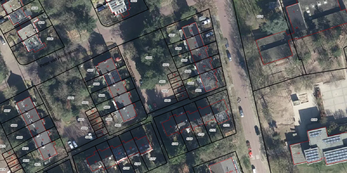 Slothouberstraat 6 is gelegen op kadastraal perceel AHM01N5654. Deze kadastrale aanduiding is uniek en wordt gebruikt door het Kadaster om eigendomsrechten en andere zakelijke rechten vast te leggen. Het perceel maakt onderdeel uit van de kadastrale gemeente Arnhem.