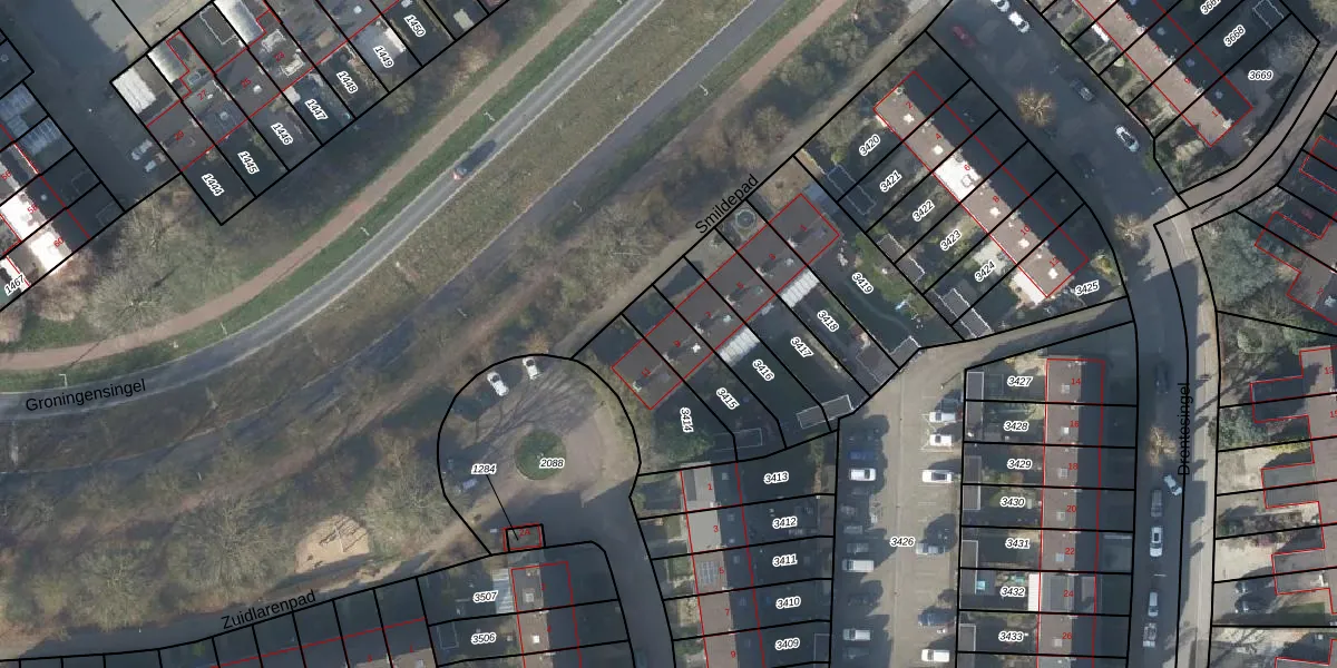 Gebruik de zoekbalk of klik op een perceel voor informatie over de adressen binnen dit perceel.
