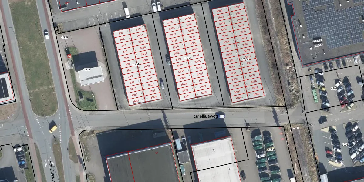 Snelliusweg 30-36 is gelegen op kadastraal perceel AHM01D5556. Deze kadastrale aanduiding is uniek en wordt gebruikt door het Kadaster om eigendomsrechten en andere zakelijke rechten vast te leggen. Het perceel maakt onderdeel uit van de kadastrale gemeente Arnhem.