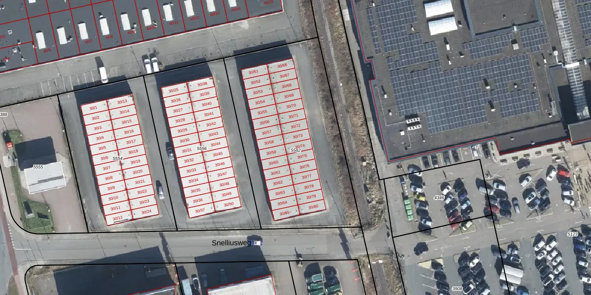 Het perceel waarop Snelliusweg 30-74 staat heeft een oppervlakte van 2067 m². Dit is een zeer groot perceel. De perceeloppervlakte wordt geregistreerd door het Kadaster. Gedetailleerde informatie over de maten van dit perceel kunt u vinden in het rapport Kadastrale kaart met maatvoering van Snelliusweg 30-74.