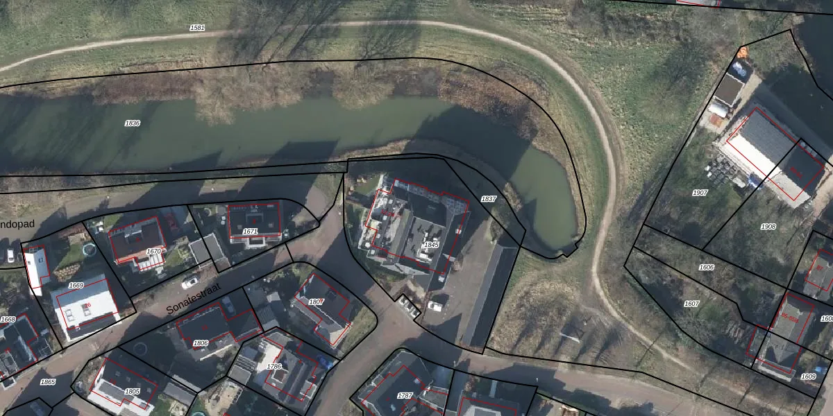 Het perceel waarop Sonatestraat 16 staat heeft een oppervlakte van 1327 m². Dit is een zeer groot perceel. De perceeloppervlakte wordt geregistreerd door het Kadaster. Gedetailleerde informatie over de maten van dit perceel kunt u vinden in het rapport Kadastrale kaart met maatvoering van Sonatestraat 16.