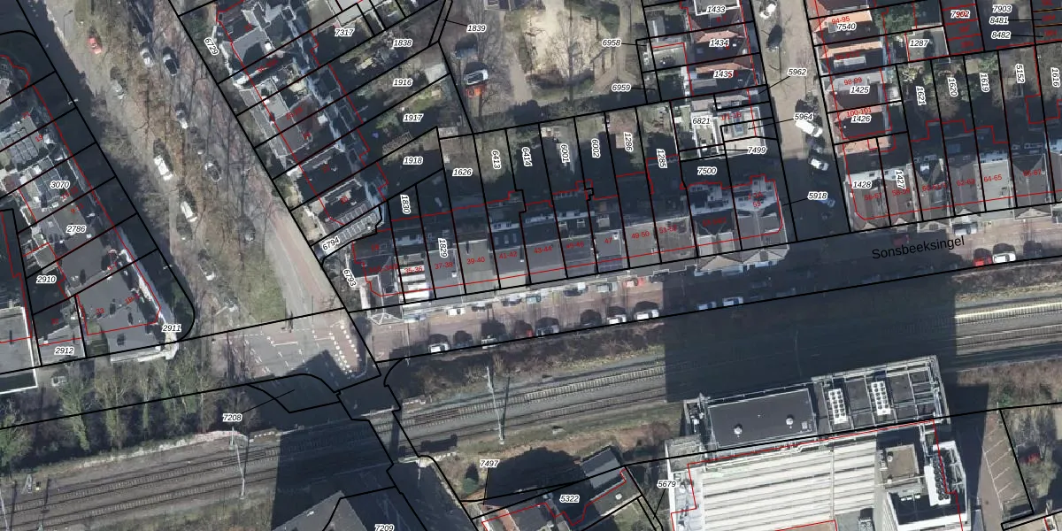 Sonsbeeksingel 43 is gelegen op kadastraal perceel AHM01N6414. Deze kadastrale aanduiding is uniek en wordt gebruikt door het Kadaster om eigendomsrechten en andere zakelijke rechten vast te leggen. Het perceel maakt onderdeel uit van de kadastrale gemeente Arnhem.