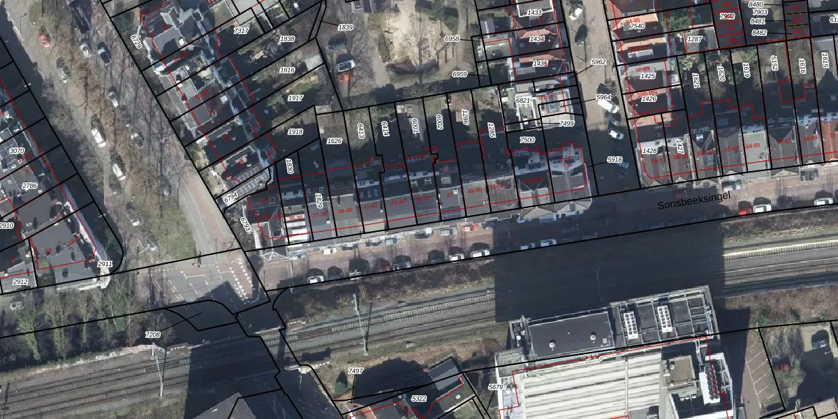 Het perceel waarop Sonsbeeksingel 45 staat heeft een oppervlakte van 184 m². Dit is een middelgroot perceel. De perceeloppervlakte wordt geregistreerd door het Kadaster. Gedetailleerde informatie over de maten van dit perceel kunt u vinden in het rapport Kadastrale kaart met maatvoering van Sonsbeeksingel 45.