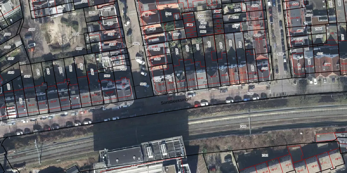 Het perceel waarop Sonsbeeksingel 59 staat heeft een oppervlakte van 107 m². Dit is een middelgroot perceel. De perceeloppervlakte wordt geregistreerd door het Kadaster. Gedetailleerde informatie over de maten van dit perceel kunt u vinden in het rapport Kadastrale kaart met maatvoering van Sonsbeeksingel 59.