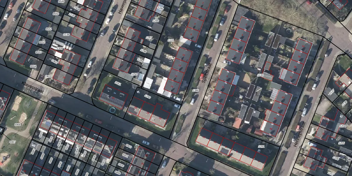 Het perceel waarop Speltstraat 16 staat heeft een oppervlakte van 1665 m². Dit is een zeer groot perceel. De perceeloppervlakte wordt geregistreerd door het Kadaster. Gedetailleerde informatie over de maten van dit perceel kunt u vinden in het rapport Kadastrale kaart met maatvoering van Speltstraat 16.