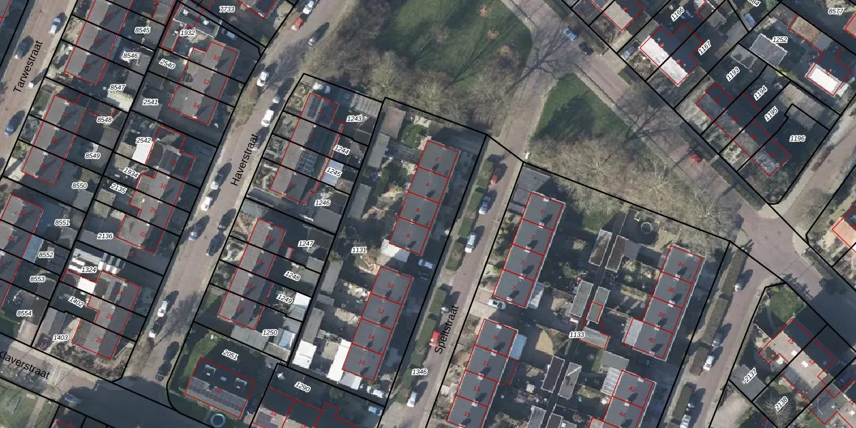 Het perceel waarop Speltstraat 6 staat heeft een oppervlakte van 1665 m². Dit is een zeer groot perceel. De perceeloppervlakte wordt geregistreerd door het Kadaster. Gedetailleerde informatie over de maten van dit perceel kunt u vinden in het rapport Kadastrale kaart met maatvoering van Speltstraat 6.