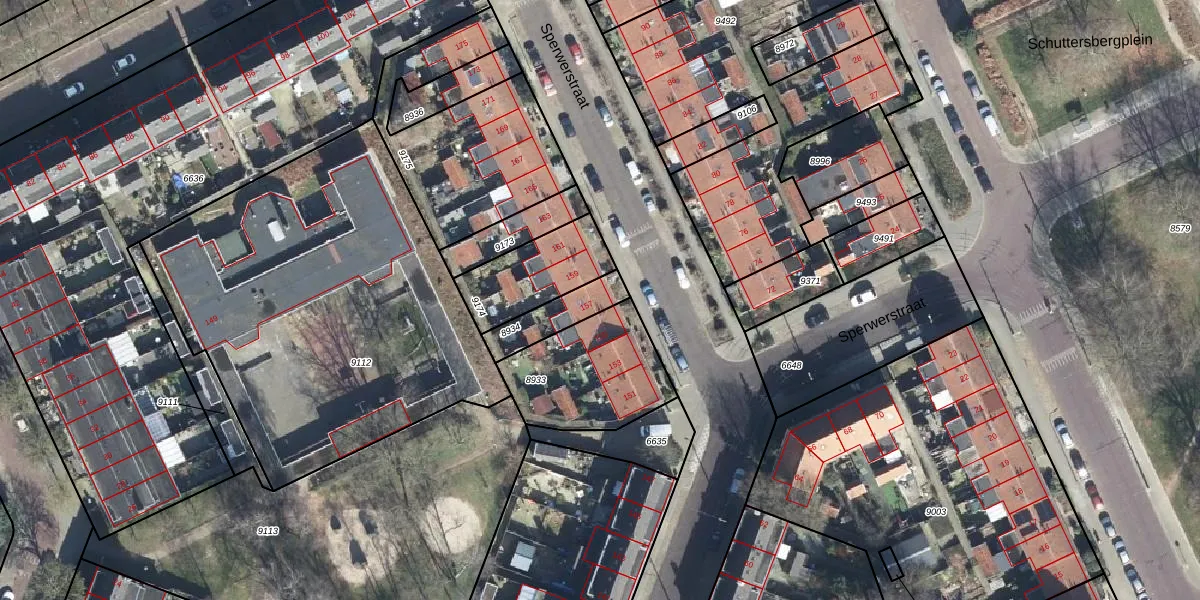 Gebruik de zoekbalk of klik op een perceel voor informatie over de adressen binnen dit perceel.