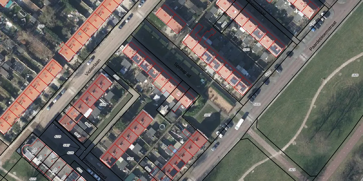 Het perceel waarop Spireapad 14 staat heeft een oppervlakte van 128 m². Dit is een middelgroot perceel. De perceeloppervlakte wordt geregistreerd door het Kadaster. Gedetailleerde informatie over de maten van dit perceel kunt u vinden in het rapport Kadastrale kaart met maatvoering van Spireapad 14.