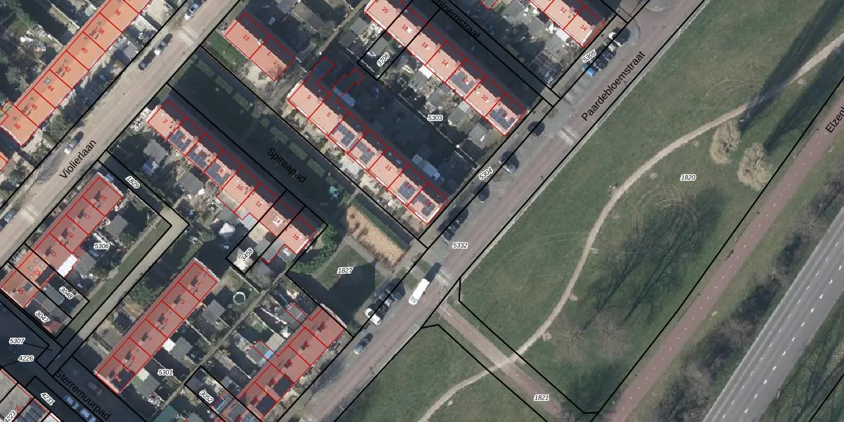 Het perceel waarop Spireapad 15 staat heeft een oppervlakte van 4380 m². Dit is een zeer groot perceel. De perceeloppervlakte wordt geregistreerd door het Kadaster. Gedetailleerde informatie over de maten van dit perceel kunt u vinden in het rapport Kadastrale kaart met maatvoering van Spireapad 15.