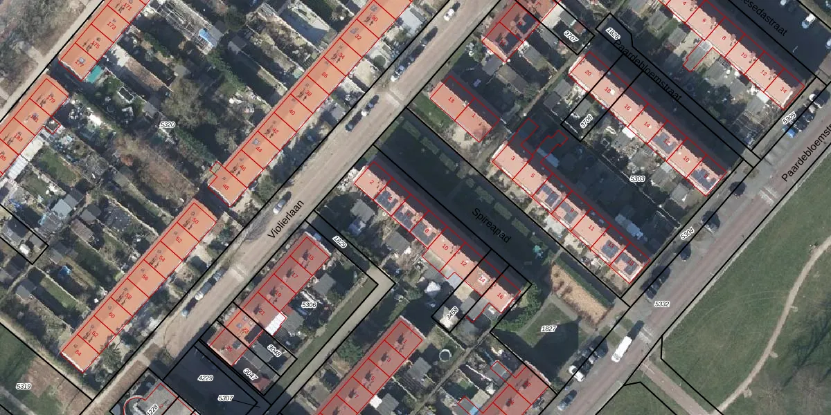 Het perceel waarop Spireapad 6 staat heeft een oppervlakte van 2904 m². Dit is een zeer groot perceel. De perceeloppervlakte wordt geregistreerd door het Kadaster. Gedetailleerde informatie over de maten van dit perceel kunt u vinden in het rapport Kadastrale kaart met maatvoering van Spireapad 6.