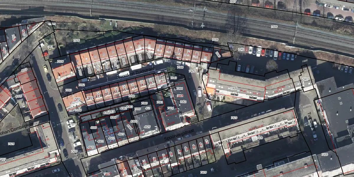 Het perceel waarop Spoorwegstraat 105 staat heeft een oppervlakte van 530 m². Dit is een groot perceel. De perceeloppervlakte wordt geregistreerd door het Kadaster. Gedetailleerde informatie over de maten van dit perceel kunt u vinden in het rapport Kadastrale kaart met maatvoering van Spoorwegstraat 105.