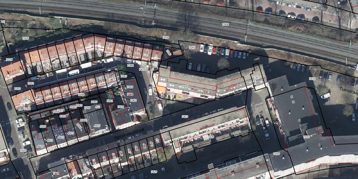 Het perceel waarop Spoorwegstraat 115 staat heeft een oppervlakte van 865 m². Dit is een groot perceel. De perceeloppervlakte wordt geregistreerd door het Kadaster. Gedetailleerde informatie over de maten van dit perceel kunt u vinden in het rapport Kadastrale kaart met maatvoering van Spoorwegstraat 115.