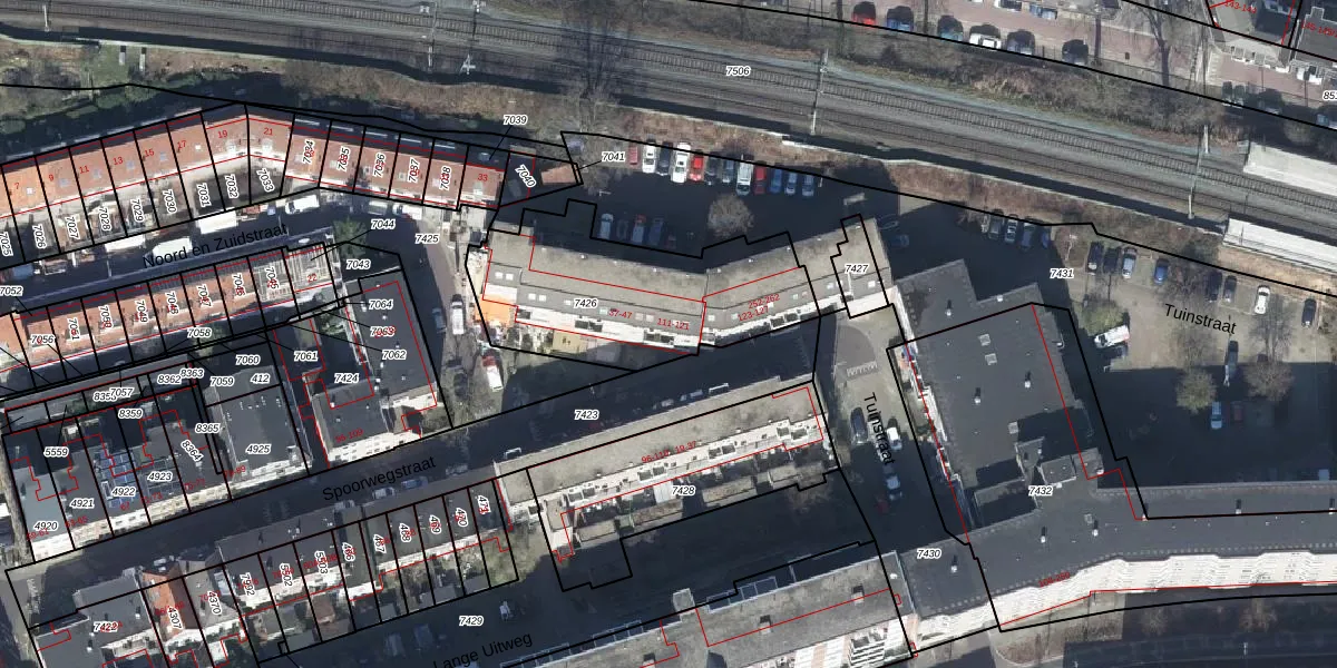Het perceel waarop Spoorwegstraat 121 staat heeft een oppervlakte van 865 m². Dit is een groot perceel. De perceeloppervlakte wordt geregistreerd door het Kadaster. Gedetailleerde informatie over de maten van dit perceel kunt u vinden in het rapport Kadastrale kaart met maatvoering van Spoorwegstraat 121.