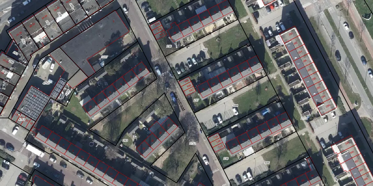 Het perceel waarop Spuistraat 59-C staat heeft een oppervlakte van 874 m². Dit is een groot perceel. De perceeloppervlakte wordt geregistreerd door het Kadaster. Gedetailleerde informatie over de maten van dit perceel kunt u vinden in het rapport Kadastrale kaart met maatvoering van Spuistraat 59-C.