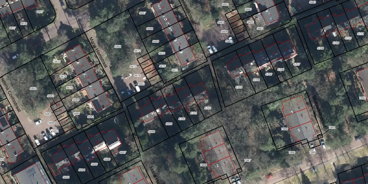 Het perceel waarop St. Caeciliapad 23 staat heeft een oppervlakte van 184 m². Dit is een middelgroot perceel. De perceeloppervlakte wordt geregistreerd door het Kadaster. Gedetailleerde informatie over de maten van dit perceel kunt u vinden in het rapport Kadastrale kaart met maatvoering van St. Caeciliapad 23.