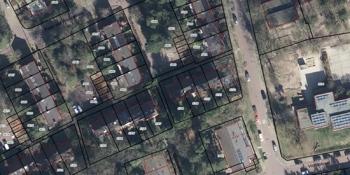 Het perceel waarop St. Caeciliapad 9 staat heeft een oppervlakte van 294 m². Dit is een middelgroot perceel. De perceeloppervlakte wordt geregistreerd door het Kadaster. Gedetailleerde informatie over de maten van dit perceel kunt u vinden in het rapport Kadastrale kaart met maatvoering van St. Caeciliapad 9.
