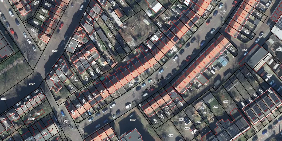 Het perceel waarop St. Janskerkstraat 111 staat heeft een oppervlakte van 858 m². Dit is een groot perceel. De perceeloppervlakte wordt geregistreerd door het Kadaster. Gedetailleerde informatie over de maten van dit perceel kunt u vinden in het rapport Kadastrale kaart met maatvoering van St. Janskerkstraat 111.