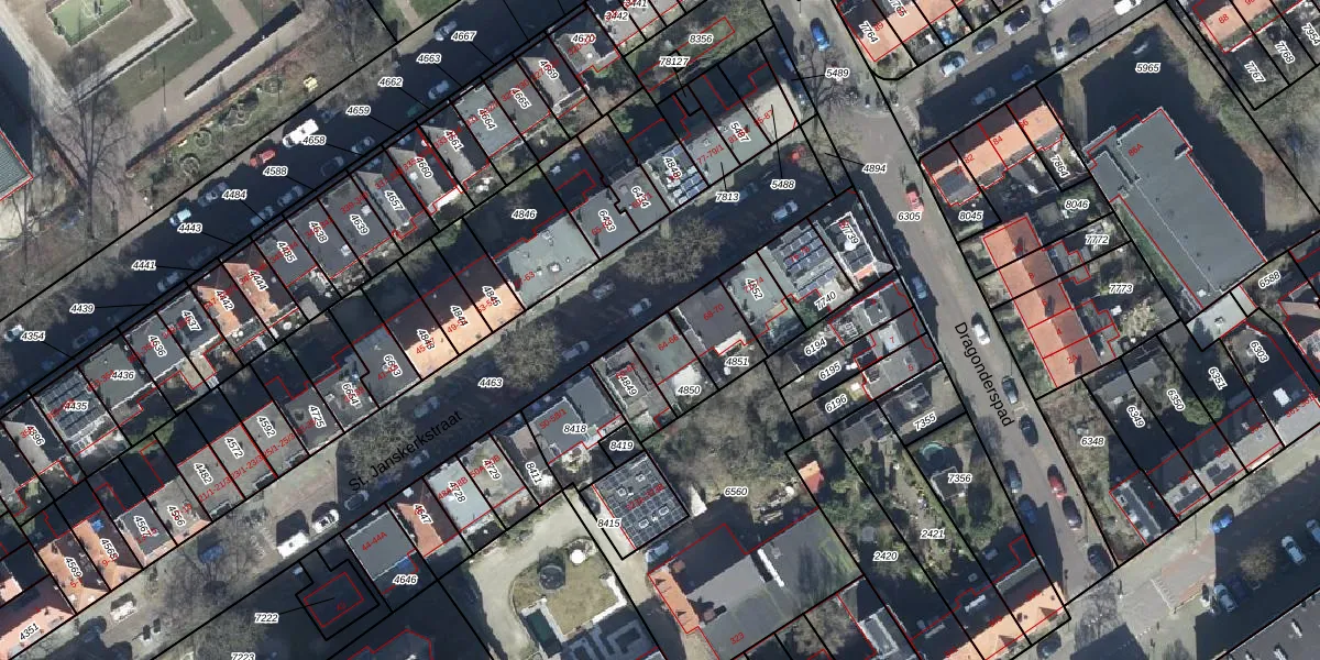 St. Janskerkstraat 64 is gelegen op kadastraal perceel AHM01R4850. Deze kadastrale aanduiding is uniek en wordt gebruikt door het Kadaster om eigendomsrechten en andere zakelijke rechten vast te leggen. Het perceel maakt onderdeel uit van de kadastrale gemeente Arnhem.