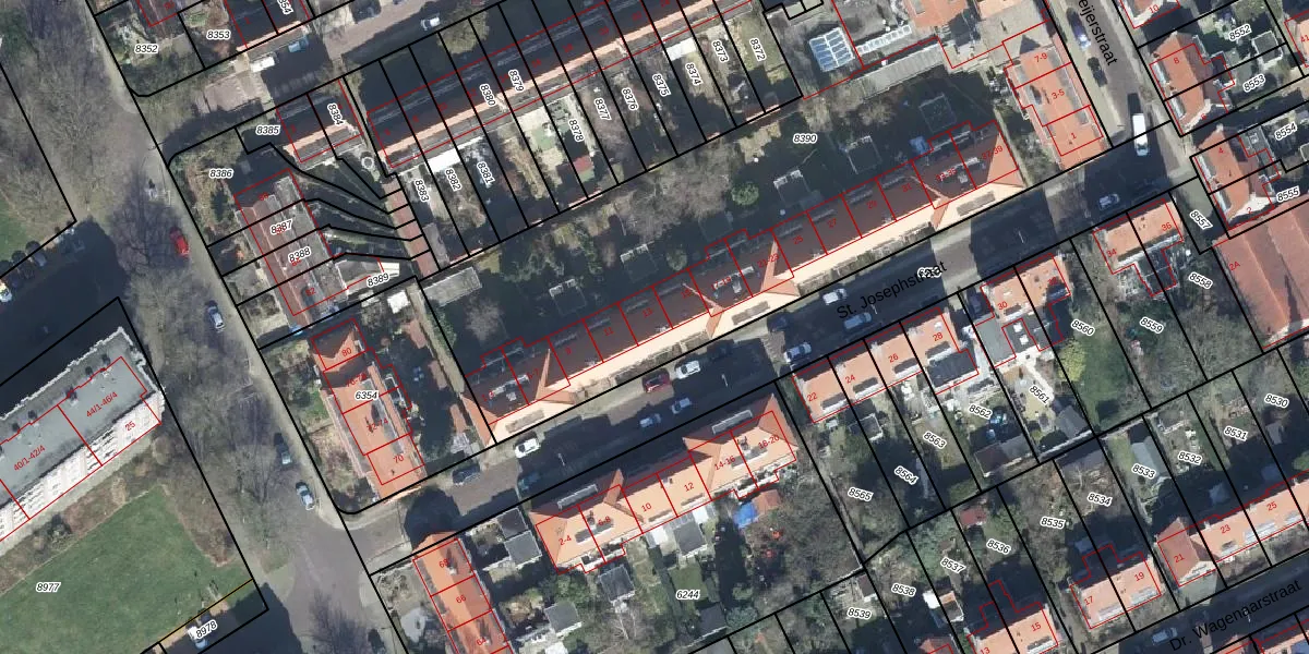 Het perceel waarop St. Josephstraat 13 staat heeft een oppervlakte van 3752 m². Dit is een zeer groot perceel. De perceeloppervlakte wordt geregistreerd door het Kadaster. Gedetailleerde informatie over de maten van dit perceel kunt u vinden in het rapport Kadastrale kaart met maatvoering van St. Josephstraat 13.
