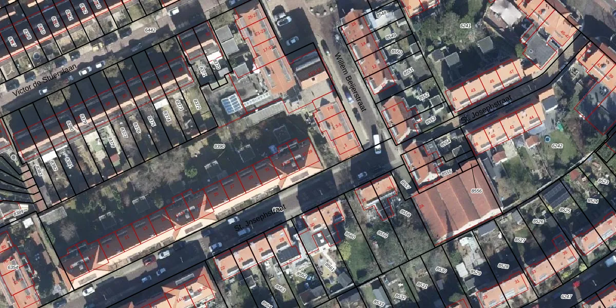 St. Josephstraat 39 is gelegen op kadastraal perceel AHM01C8390. Deze kadastrale aanduiding is uniek en wordt gebruikt door het Kadaster om eigendomsrechten en andere zakelijke rechten vast te leggen. Het perceel maakt onderdeel uit van de kadastrale gemeente Arnhem.