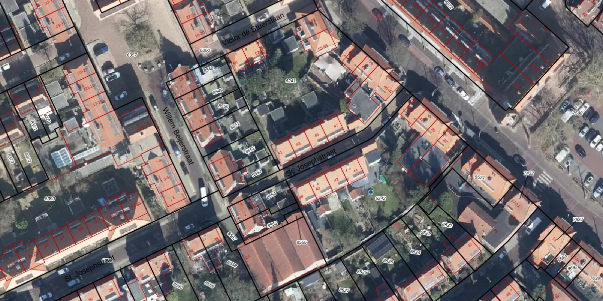 Het perceel waarop St. Josephstraat 43 staat heeft een oppervlakte van 1770 m². Dit is een zeer groot perceel. De perceeloppervlakte wordt geregistreerd door het Kadaster. Gedetailleerde informatie over de maten van dit perceel kunt u vinden in het rapport Kadastrale kaart met maatvoering van St. Josephstraat 43.