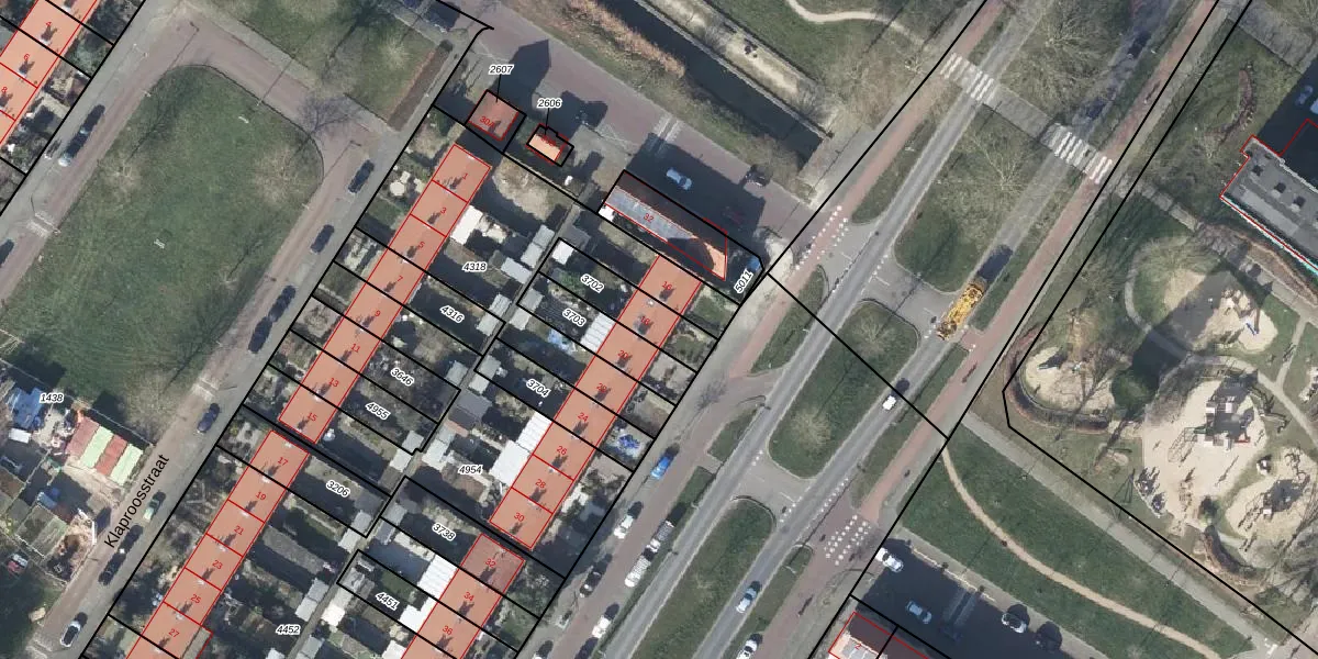 Gebruik de zoekbalk of klik op een perceel voor informatie over de adressen binnen dit perceel.