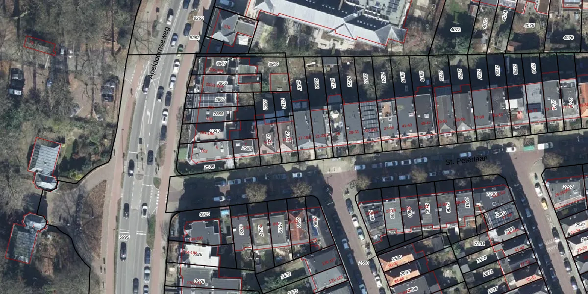 St. Peterlaan 15 is gelegen op kadastraal perceel AHM01N2314. Deze kadastrale aanduiding is uniek en wordt gebruikt door het Kadaster om eigendomsrechten en andere zakelijke rechten vast te leggen. Het perceel maakt onderdeel uit van de kadastrale gemeente Arnhem.