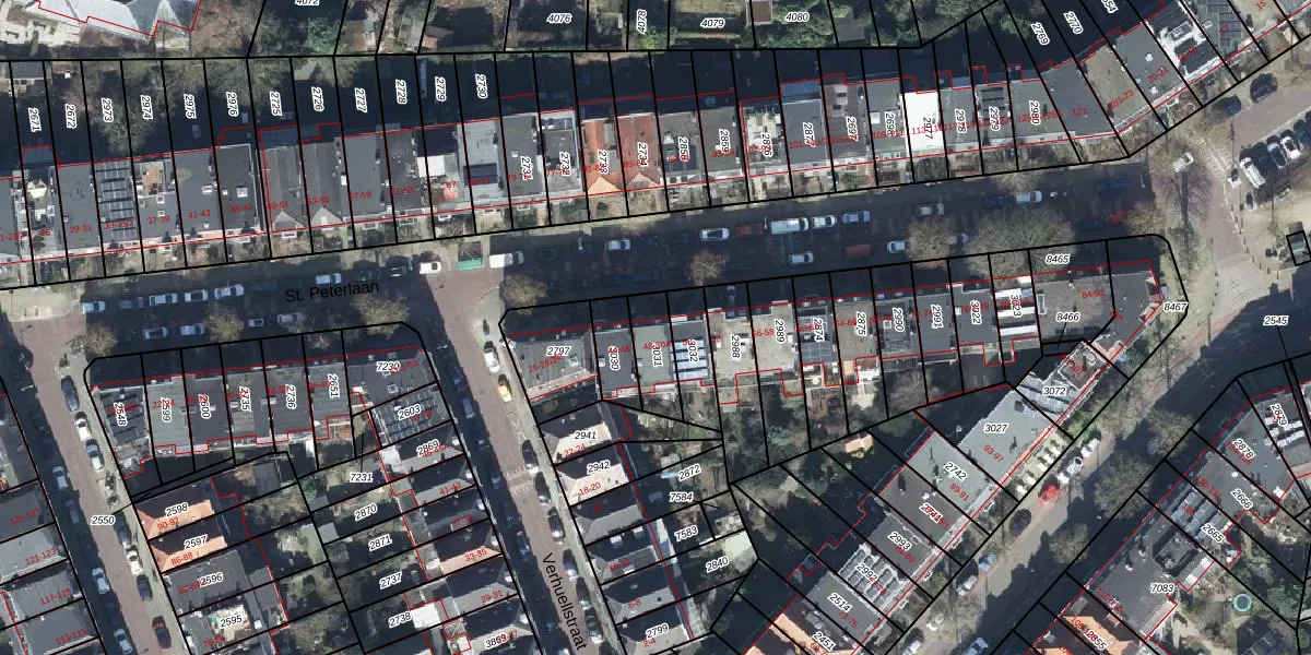 Het perceel waarop St. Peterlaan 48 staat heeft een oppervlakte van 107 m². Dit is een middelgroot perceel. De perceeloppervlakte wordt geregistreerd door het Kadaster. Gedetailleerde informatie over de maten van dit perceel kunt u vinden in het rapport Kadastrale kaart met maatvoering van St. Peterlaan 48.