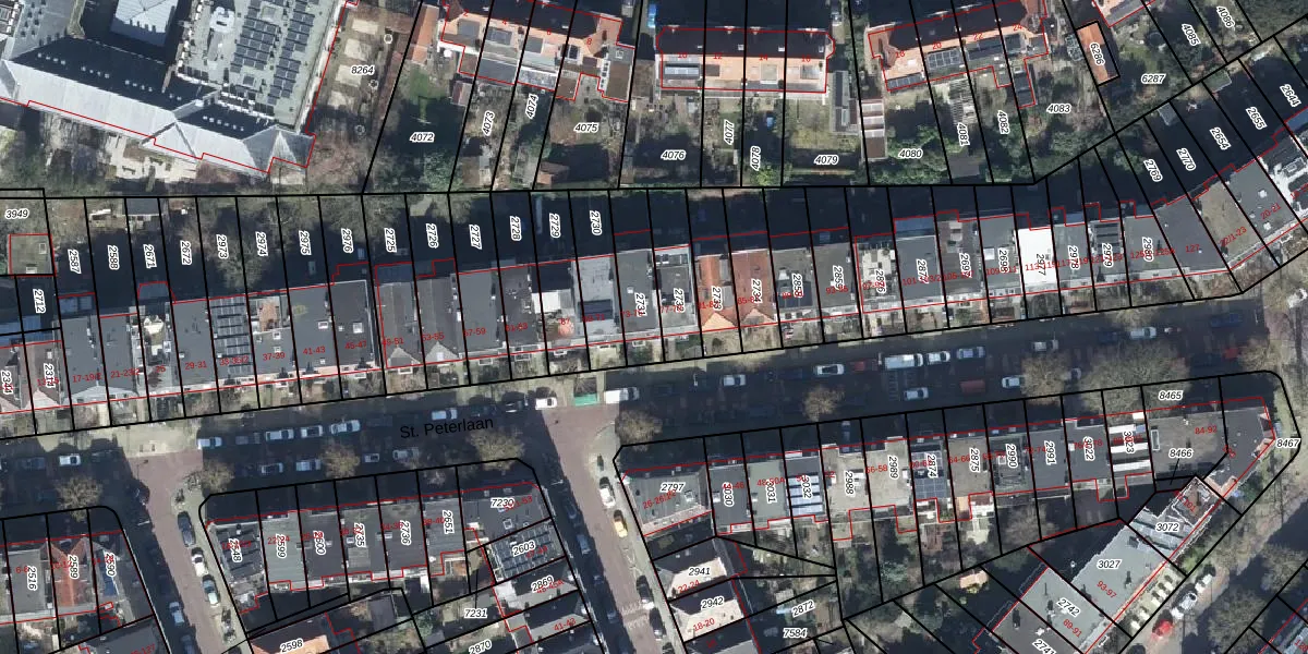 Het perceel waarop St. Peterlaan 75 staat heeft een oppervlakte van 164 m². Dit is een middelgroot perceel. De perceeloppervlakte wordt geregistreerd door het Kadaster. Gedetailleerde informatie over de maten van dit perceel kunt u vinden in het rapport Kadastrale kaart met maatvoering van St. Peterlaan 75.